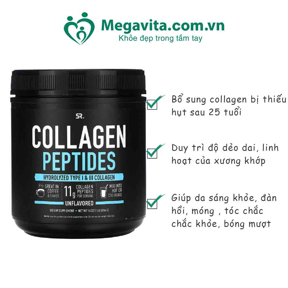 Sản phẩm bột collagen thủy phân Sports Research Collagen Peptides 454g