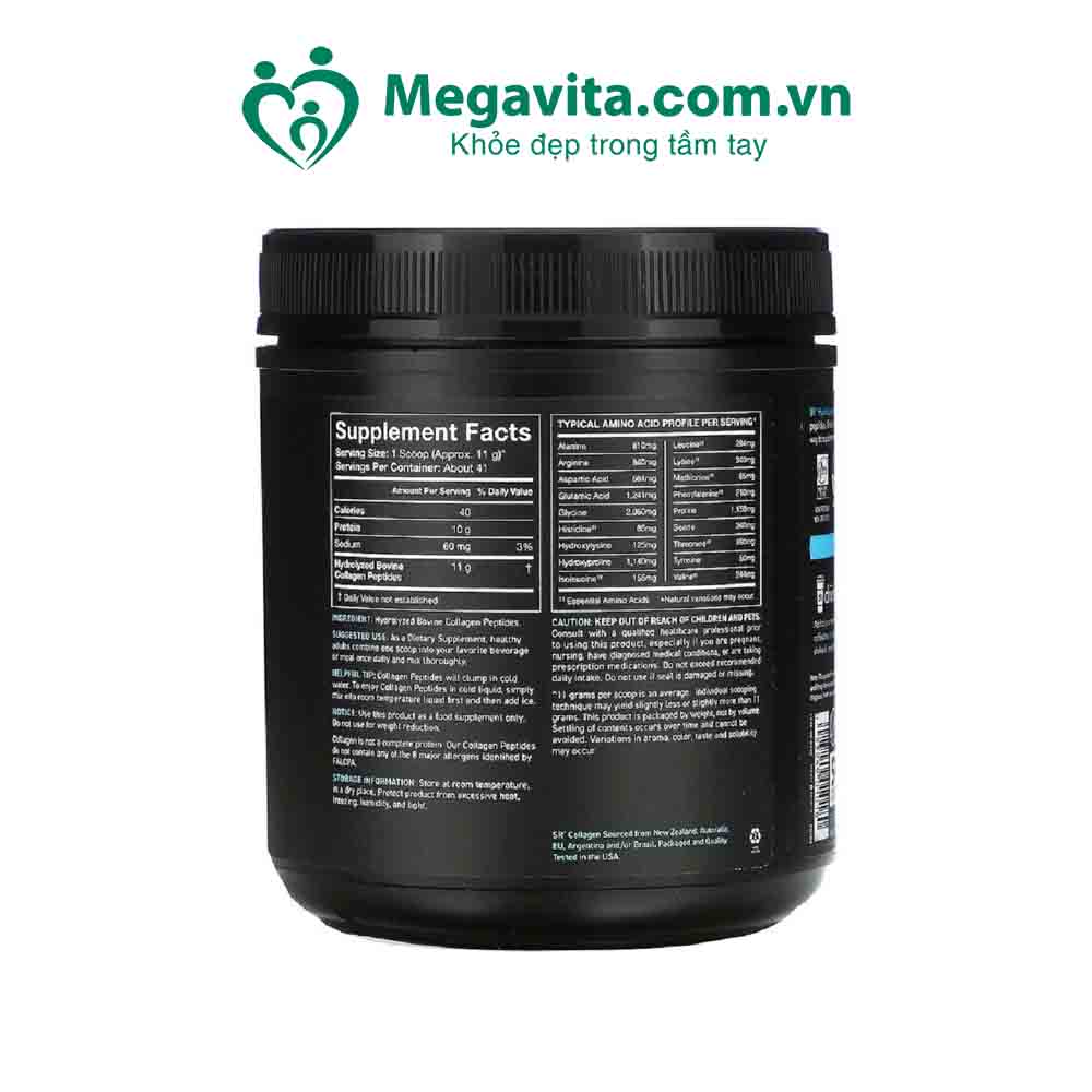 Thành phần bột collagen thủy phân Sports Research Collagen Peptides 454g
